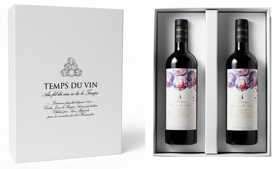 В момент вручения вы дарите две именные бутылки вина Château de Pitray разных лет урожая:
